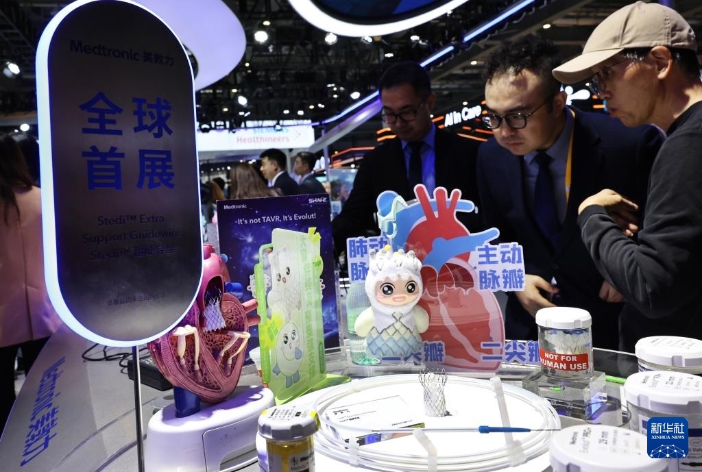 11月6日,參觀者在美敦力公司一款超硬導(dǎo)絲產(chǎn)品展臺(tái)前駐足觀看,這是該產(chǎn)品的全球首展。