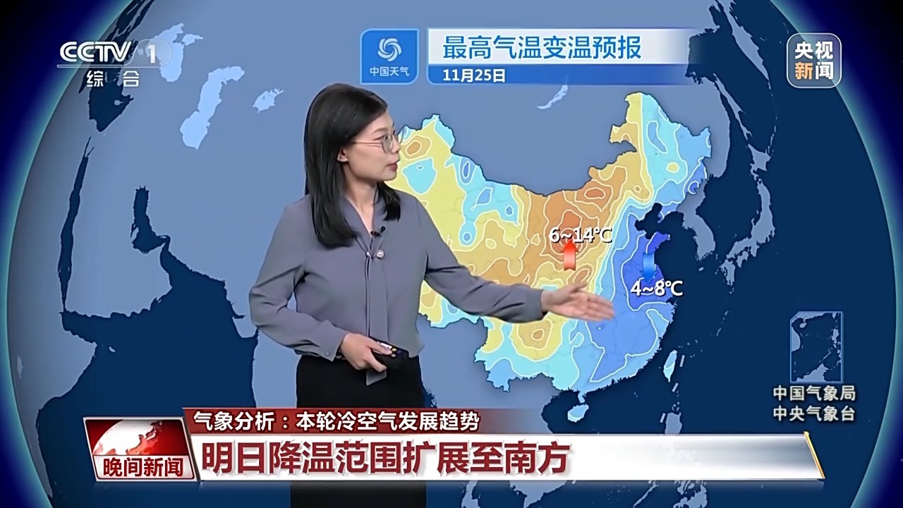 25日冷空氣將快速東移南下,降溫的范圍也會(huì)向南擴(kuò)展到南方大部地區(qū),尤其是在山東、江蘇、安徽一帶,最高氣溫單日降幅可以達(dá)到4~8度。最高氣溫會(huì)降到常年正常水平附近,10度線會(huì)南壓到黃淮,20度線會(huì)退至華南一帶。