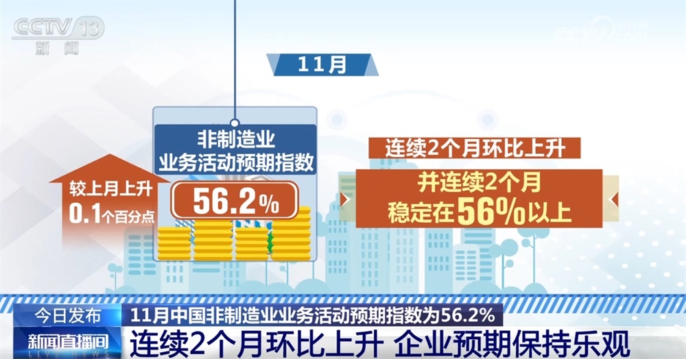 11月中國非制造業(yè)商務(wù)活動指數(shù)為49.5%:金融活動和新動能表現(xiàn)良好 企業(yè)預(yù)期樂觀