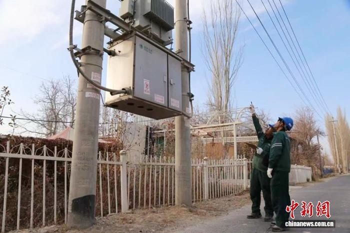 國網阿克蘇供電公司員工對烏什縣配網線路開展特巡。國網新疆電力有限公司供圖
