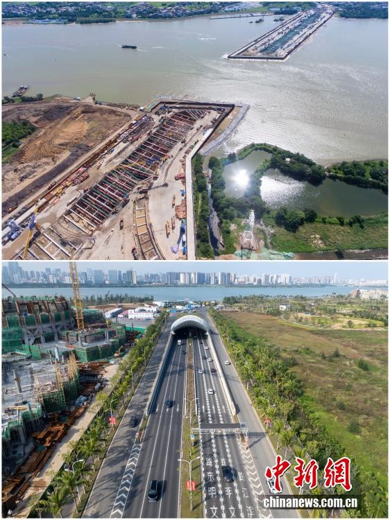 2025年12月18日,海南自由貿(mào)易港正式啟動(dòng)全島封關(guān)。近年來,海南自貿(mào)港建設(shè)在利好政策帶動(dòng)下不斷刷新“自貿(mào)港速度”,一個(gè)個(gè)重大項(xiàng)目、重點(diǎn)園區(qū)拔地而起,直觀呈現(xiàn)海南自貿(mào)港的蓬勃生機(jī)。這里正成為中國對外開放的新前沿、互利合作的新熱土和推動(dòng)經(jīng)濟(jì)全球化的新引擎。上資料圖為2019年6月19日的??谖拿鳀|越江隧道施工現(xiàn)場,下資料圖為2025年12月7日已建成通車的海南省首條跨越南渡江隧道——文明東隧道。(拼版圖,無人機(jī)照片)