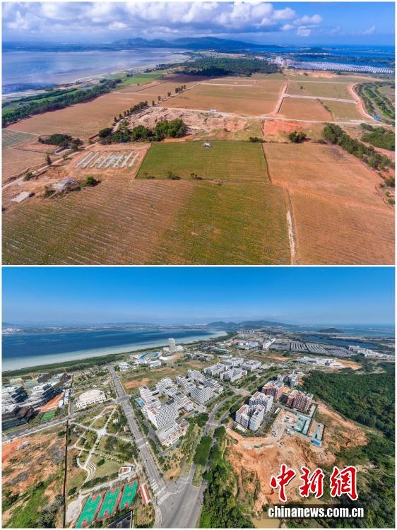 2025年12月18日,海南自由貿(mào)易港正式啟動(dòng)全島封關(guān)。近年來,海南自貿(mào)港建設(shè)在利好政策帶動(dòng)下不斷刷新“自貿(mào)港速度”,一個(gè)個(gè)重大項(xiàng)目、重點(diǎn)園區(qū)拔地而起,直觀呈現(xiàn)海南自貿(mào)港的蓬勃生機(jī)。這里正成為中國對外開放的新前沿、互利合作的新熱土和推動(dòng)經(jīng)濟(jì)全球化的新引擎。上資料圖為2020年8月19日俯瞰三亞崖州灣科技城高新區(qū)建設(shè)現(xiàn)場,下資料圖為2025年12月9日已初具規(guī)模的三亞崖州灣科技城高新區(qū)。(拼版圖,無人機(jī)照片)