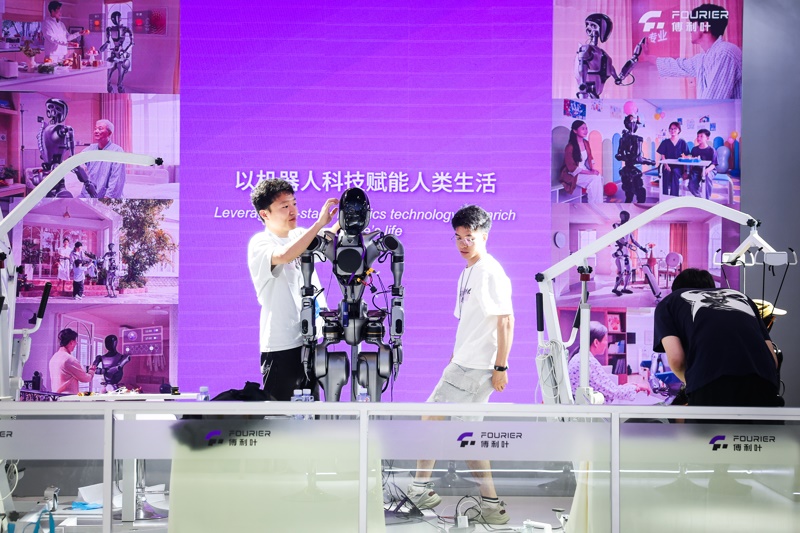 2025世界人工智能大會上,傅利葉工程師調(diào)試人形機器人。解放日報記者 海沙爾 攝