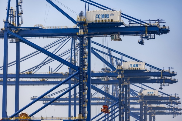 在海南島西北端的洋浦港,高大的岸橋整齊排列,正繁忙吊運(yùn)運(yùn)往來貨輪上的集裝箱,展現(xiàn)出一幅“陸海聯(lián)動(dòng)”的生動(dòng)圖景。