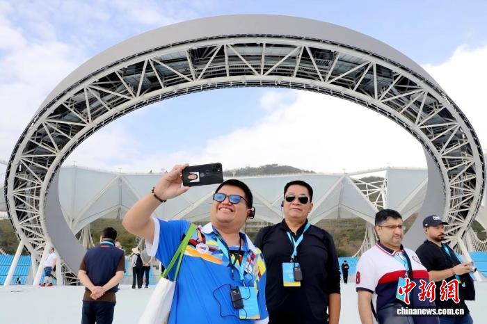 1月19日,第六屆亞洲沙灘運(yùn)動(dòng)會(huì)世界媒體大會(huì)暨世界轉(zhuǎn)播商大會(huì)在海南三亞舉行。圖為國(guó)際記者參訪(fǎng)三亞天涯海角游覽區(qū)亞沙公園。(第六屆亞洲沙灘運(yùn)動(dòng)會(huì)執(zhí)委會(huì) 供圖)