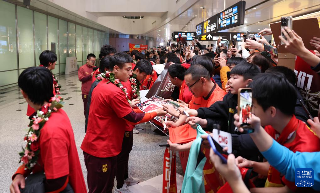 1月26日,在沙特阿拉伯奪得U23男足亞洲杯亞軍的中國隊(duì)抵達(dá)北京大興國際機(jī)場。