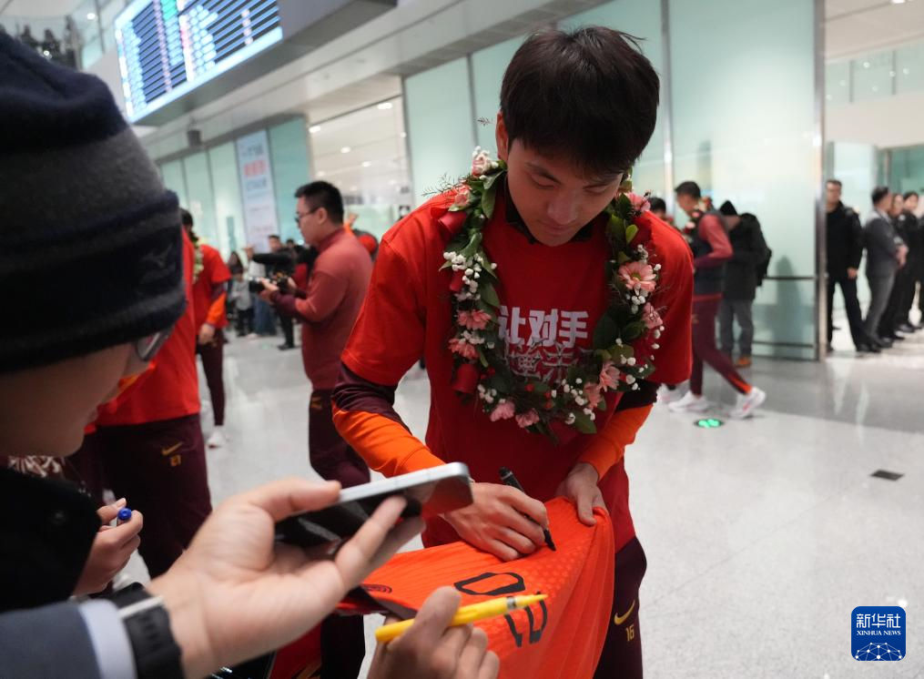 1月26日,大批球迷在機(jī)場歡迎中國隊(duì)歸來。