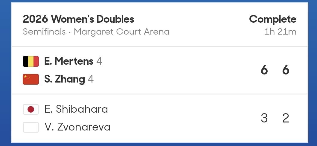 北京時(shí)間1月29日,2026澳網(wǎng)女雙展開(kāi)半決賽較量,中國(guó)球員張帥搭檔比利時(shí)球員梅爾滕斯直落兩盤擊敗柴源瑛菜/茲沃娜列娃。老將張帥時(shí)隔七年再進(jìn)澳網(wǎng)決賽。