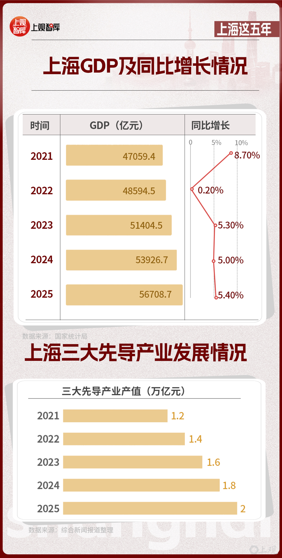 2023年,上海成為全國首個經(jīng)濟(jì)總量突破5萬億元的城市;2025年,上海GDP突破5.6萬億元,向下一個里程碑進(jìn)發(fā)。