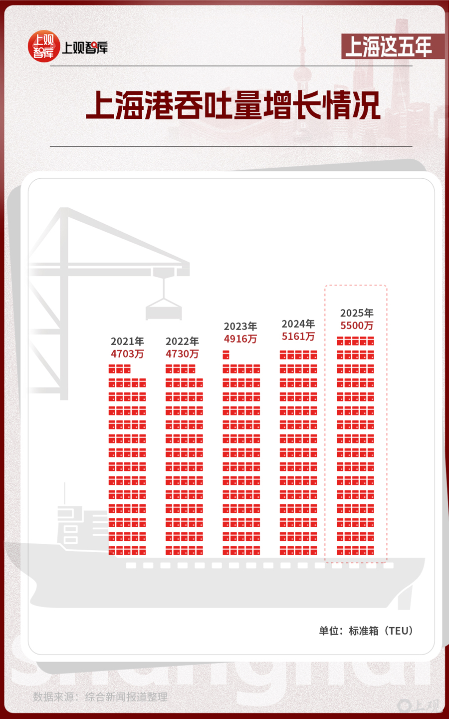 2024年,上海浦東國際機(jī)場首次排名全國旅客吞吐量第一,榮登中國最繁忙的機(jī)場。也是在這一年,上海港成為全球首個年吞吐量超過5000萬標(biāo)準(zhǔn)箱的世界大港。