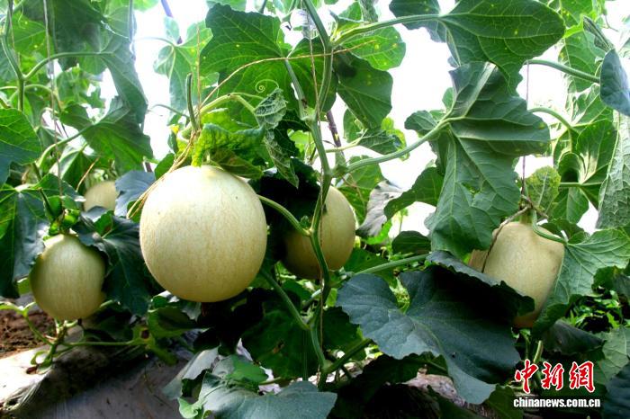 中新網(wǎng)蘭州2月9日電 (馬愛(ài)彬)原本緊貼地面生長(zhǎng)的臺(tái)灣“玉菇”甜瓜,在甘肅省武威市民勤縣的溫室大棚里換了“生長(zhǎng)姿態(tài)”,經(jīng)悉心牽引上架成為吊瓜。瓜藤沿繩攀援,果實(shí)懸垂半空,在沙漠邊緣的暖棚中積淀著飽滿(mǎn)甜意,也為當(dāng)?shù)剜l(xiāng)親的新春日子攢下實(shí)實(shí)在在的增收底氣。