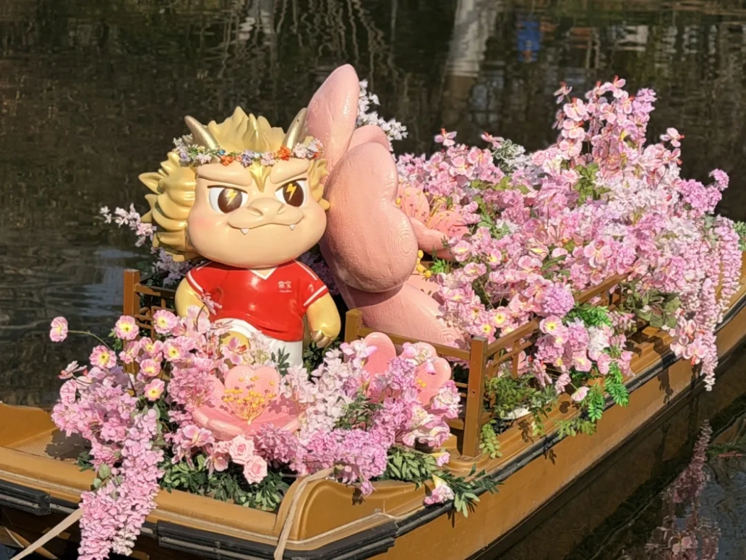 在江南水鄉(xiāng),早春的序曲總是由梅花奏響。江蘇常州便是這抹春色里最具代表性的剪影。龍城正月,古運河畔紅燈籠高掛,紅梅公園內,唐代紅梅閣翹角飛檐,閣前紅梅燦若云霞,恰如趙翼詩中所繪的盛景。這里的賞梅,早已不是單純的游園,而是一場雅俗共賞的年俗盛會。文旅IP“常寶"穿梭送福,打卡點紅燈籠高懸,大年初一的市集上,手作、梅花好物琳瑯滿目,糖畫、梅花酥香氣四溢,文筆塔的花瀑氛圍拉滿,市民在梅香與煙火氣中收獲新春幸福。