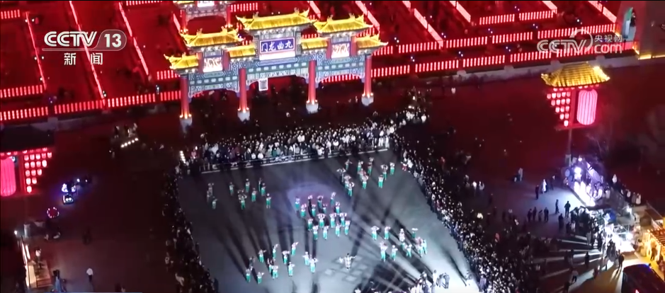九曲燈陣占地面積近20畝,外部方正、內(nèi)部曲折,宛如“九曲十八彎”的黃河。游客們跟隨奏樂隊伍,進入九宮九格的迷宮,穿行全長2.4公里的回廊,依次走過寓意著“福祿壽喜”的九個曲陣。兩邊的燈籠上懸掛著百家姓和十二生肖,游客們可以一邊轉(zhuǎn)九曲,一邊尋找印有自己姓氏和屬相的紅燈籠,沉浸式體驗元宵佳節(jié)的喜慶氛圍。除了九曲燈陣,社火展演、主題光影秀、無人機煙花秀也輪番上演。據(jù)了解,該活動將一直持續(xù)到正月十五。