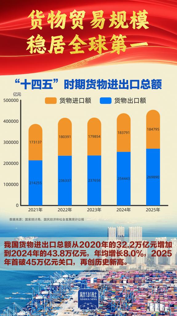 “十四五”勝利收官,“十五五”嶄新開局。我國經(jīng)濟總量完成“四連跳”,躍上140萬億元大關,經(jīng)濟實力、科技實力、綜合國力躍上新臺階,中國式現(xiàn)代化邁出新的堅實步伐,第二個百年奮斗目標新征程實現(xiàn)良好開局。2026年全國兩會召開,舉世矚目。我們梳理出九組數(shù)據(jù),一起感受勝利收官的壯闊歷程、啟新開局的高光時刻。