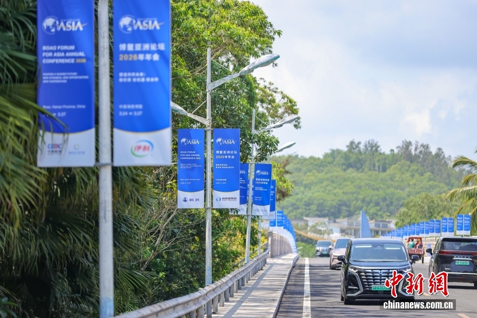 3月17日,博鰲亞洲論壇2026年年會(huì)各項(xiàng)籌備工作正有序推進(jìn),海南博鰲街頭的盛會(huì)氛圍日漸濃厚。以“塑造共同未來(lái):新形勢(shì)、新機(jī)遇、新合作”為主題的博鰲亞洲論壇2026年年會(huì)將于3月24日至27日在海南博鰲召開。圖為博鰲培蘭橋道路兩側(cè),博鰲亞洲論壇2026年年會(huì)道旗整齊排列。中新社記者 駱云飛 攝