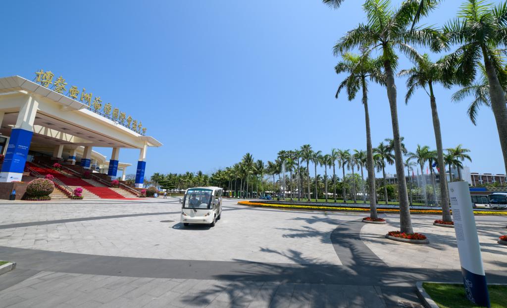3月24日拍攝的行駛在博鰲零碳示范區(qū)的新能源汽車。