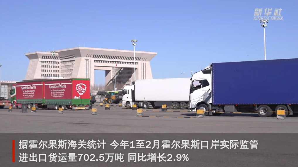 在霍爾果斯口岸,目前每天有上千輛滿載新鮮果蔬、日用百貨的廂式貨車及商品車從這里出境,運(yùn)往哈薩克斯坦、烏茲別克斯坦等共建“一帶一路”國家。據(jù)霍爾果斯海關(guān)統(tǒng)計(jì),今年1至2月霍爾果斯口岸實(shí)際監(jiān)管進(jìn)出口貨運(yùn)量702.5萬噸,同比增長(zhǎng)2.9%。