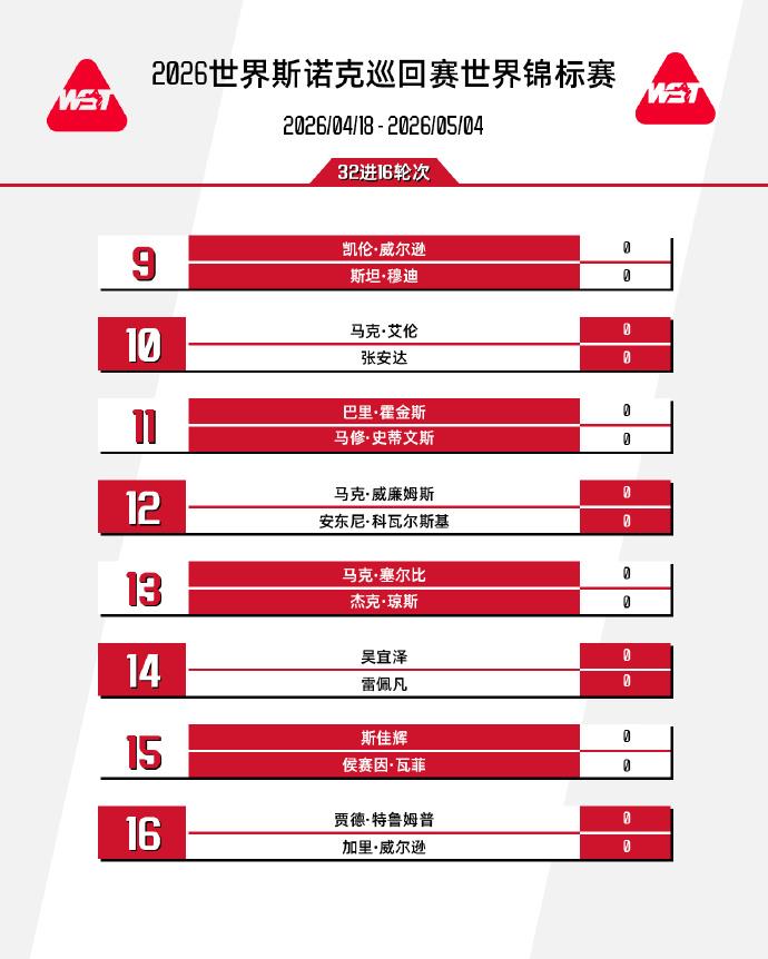 資格賽比賽,周躍龍、龐俊旭在15日比賽中率先突圍。在16日凌晨結(jié)束的比賽中,4人相繼取勝晉級,1人被淘汰。張安達(dá)10-3扎克·舒爾第,范爭一10-4本·默滕斯,賀國強(qiáng)10-5利索夫斯基,雷佩凡10-5瑞恩·戴,徐思9-10不敵加里·威爾遜。