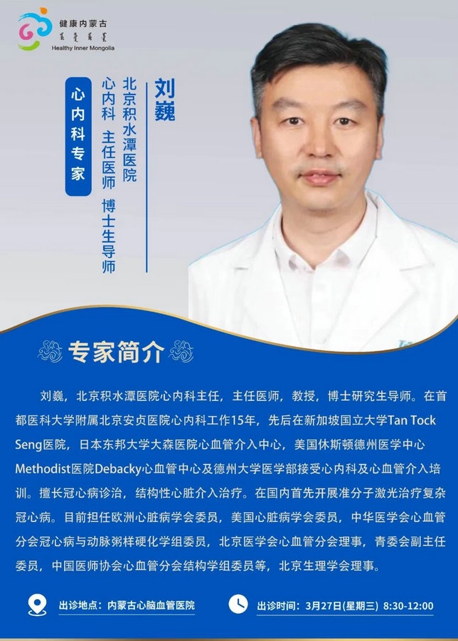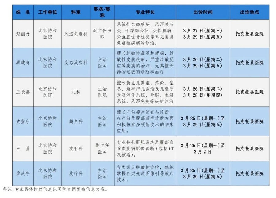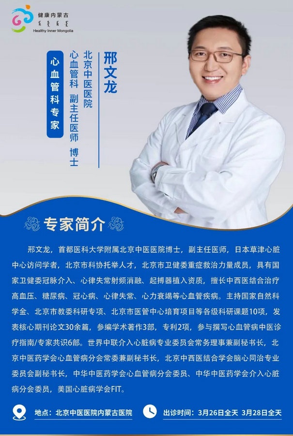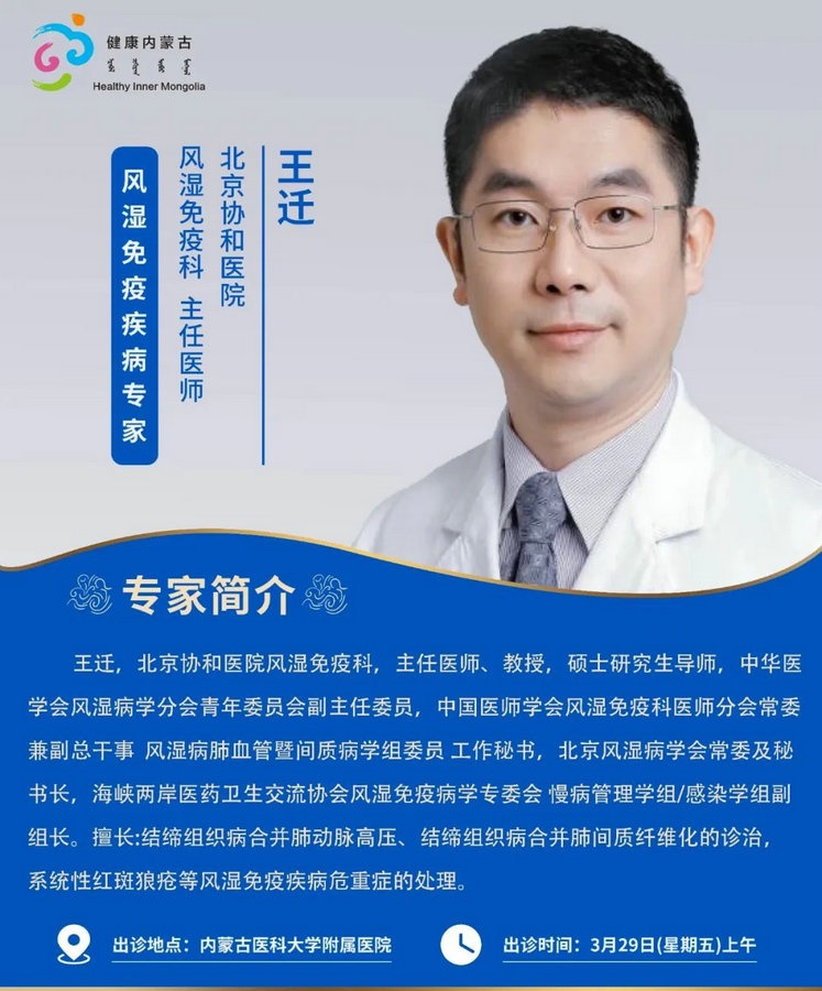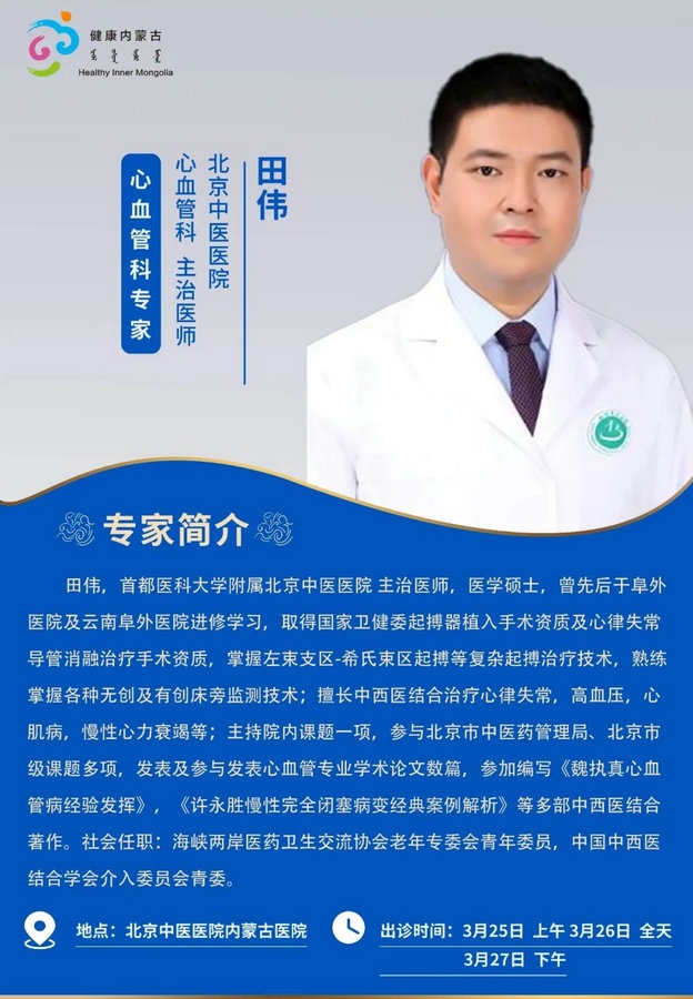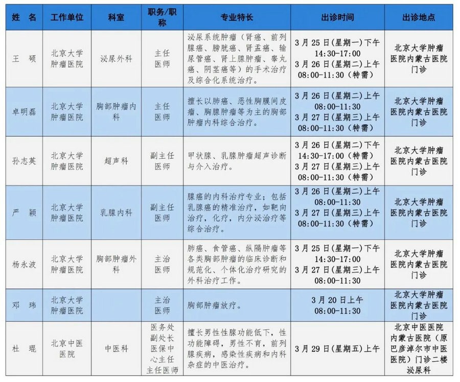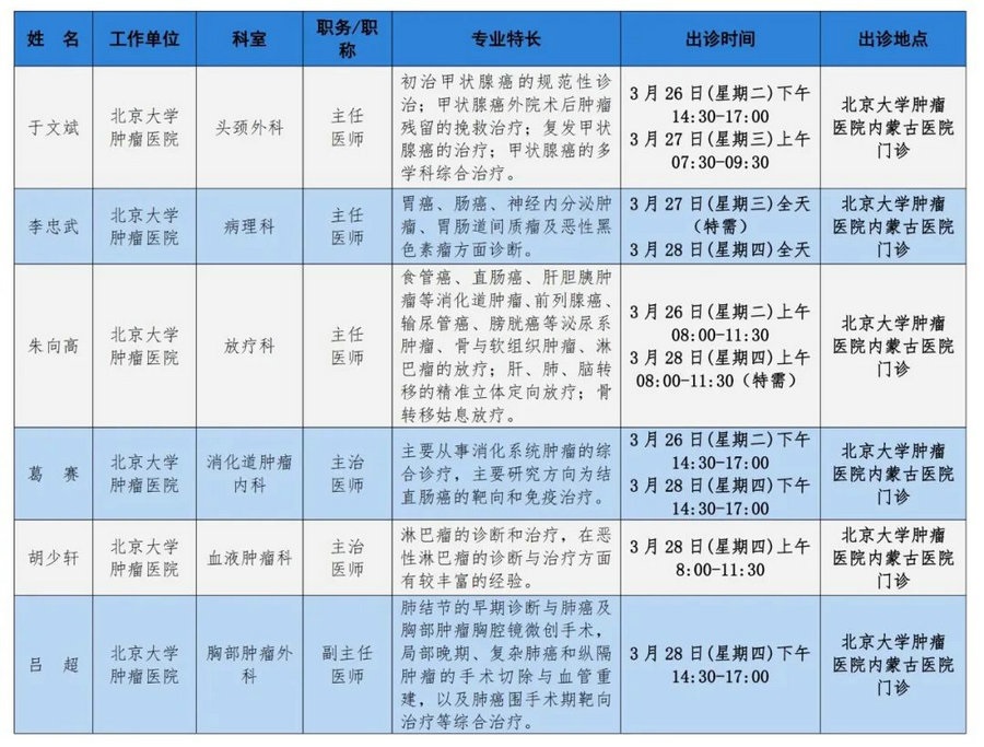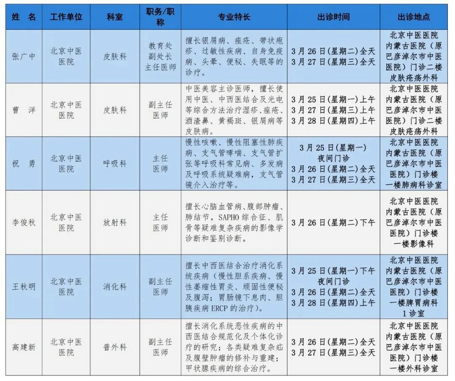 京蒙協(xié)作 政協(xié)助力。每周有北京相關協(xié)作醫(yī)院專家來呼和浩特出診,現(xiàn)將本周專家出診信息予以發(fā)布。