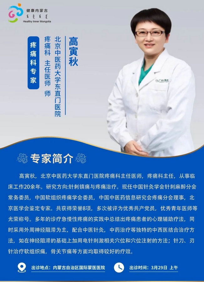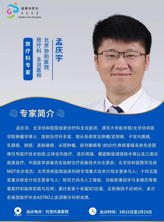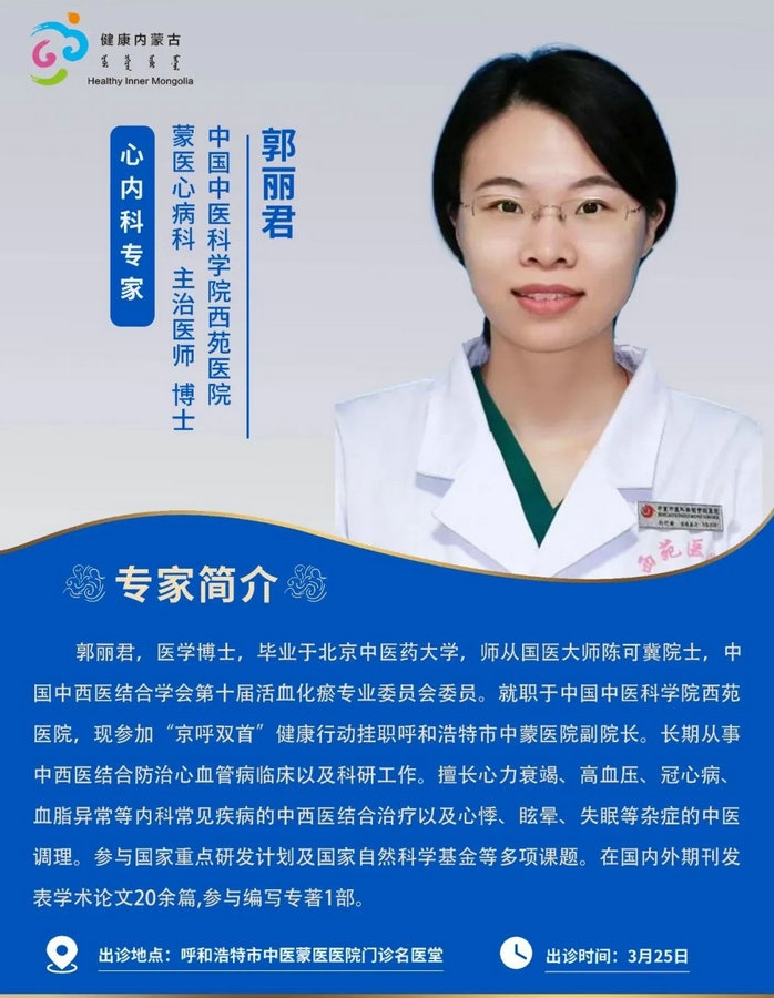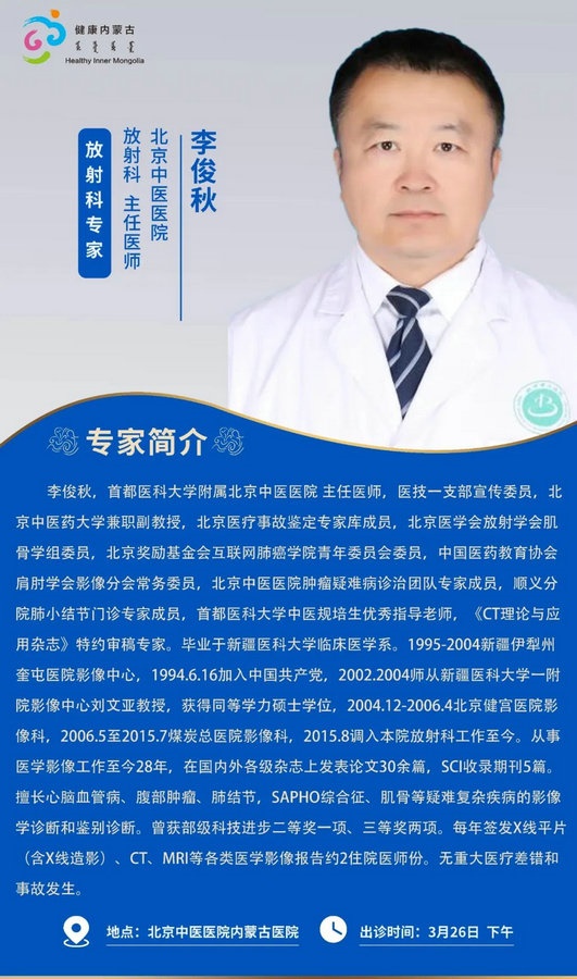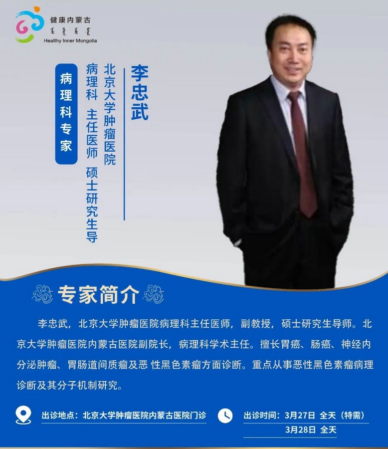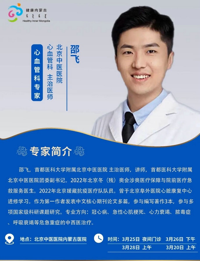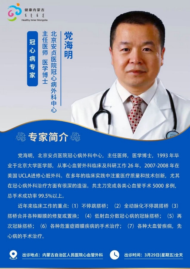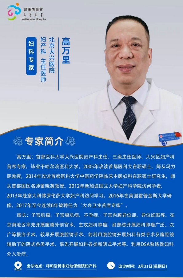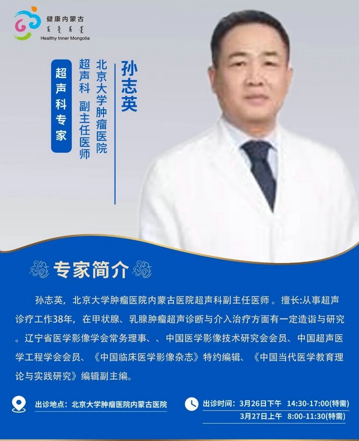 京蒙協(xié)作 政協(xié)助力。每周有北京相關協(xié)作醫(yī)院專家來呼和浩特出診,現(xiàn)將本周專家出診信息予以發(fā)布。