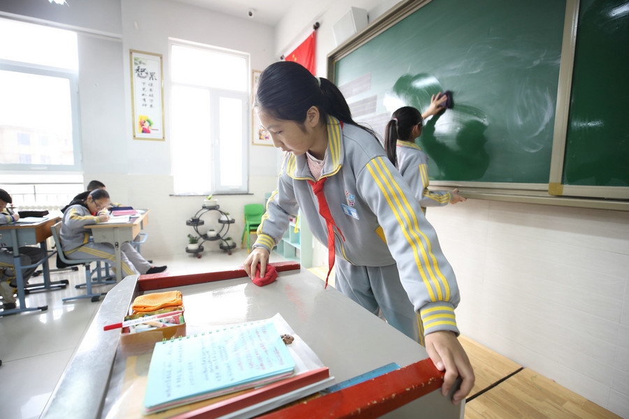 設(shè)置班級崗位之外,學(xué)校還從多方面入手讓全體學(xué)生參與勞動。校園內(nèi)的“幸福農(nóng)場”,從整理土地、播種澆水、除草除蟲直至收獲,各年級的學(xué)生經(jīng)歷了完整的種植過程;學(xué)校出資成立的“誠信超市”,3—6年級各班輪流負(fù)責(zé)貨物清點擺放、課間管理、資金盤點,去除成本外,學(xué)校還將其余部分用于困難學(xué)生的幫扶工作。