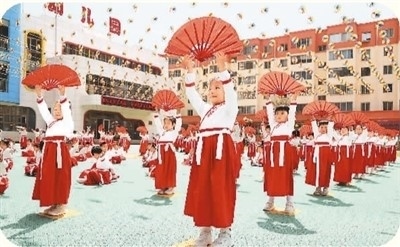 5月30日,甘肅省定西市安定區(qū)中華路幼兒園的小朋友們?cè)诒硌莨?jié)目,在快樂的氛圍中迎接兒童節(jié)。 王克賢攝(新華社發(fā)) |