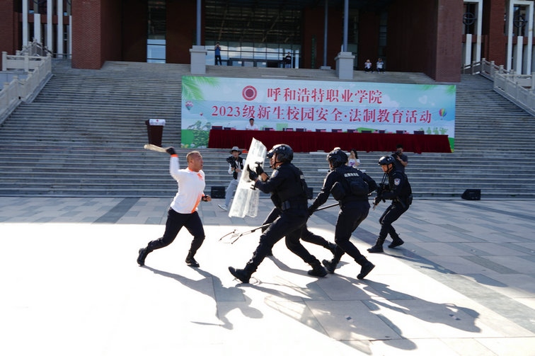 5500余名新生在軍訓(xùn)場(chǎng)上,英姿颯爽朝氣蓬勃,呼和浩特市公安局反恐怖和特巡警支隊(duì)教官團(tuán)隊(duì),通過(guò)現(xiàn)場(chǎng)授課及實(shí)操演練相結(jié)合的方式進(jìn)行了處突紅藍(lán)對(duì)抗演練(紅方為反恐怖和特巡警支隊(duì)民警,藍(lán)方為由反恐怖和特巡警支隊(duì)民警扮演的恐怖分子),指導(dǎo)學(xué)生在遇到危險(xiǎn)情況下如何應(yīng)對(duì)。進(jìn)一步增強(qiáng)大學(xué)生的安全防范意識(shí)和自我保護(hù)能力。