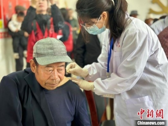 圖為長(zhǎng)沙醫(yī)學(xué)院“長(zhǎng)小團(tuán)”赴紅崖溝村義診服務(wù)現(xiàn)場(chǎng)。劉洋攝