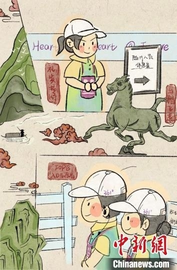 該組漫畫中,Q版人物配上荷花、祥云、馬匹等國風(fēng)元素,既可愛又新潮。每一組漫畫繪制了兩類不同組別,共展現(xiàn)了11個領(lǐng)域的志愿者形象。