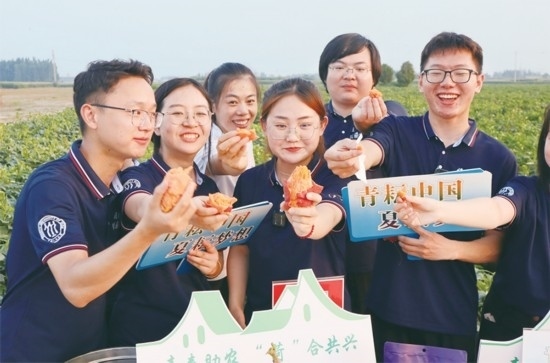 圖為2023年暑期,中國人民大學博士生服務團在山東菏澤圍繞“人才產業(yè)融合發(fā)展賦能鄉(xiāng)村振興路徑探索”課題進行調研,并開展“青耘中國·夏耘夢想”公益助農直播活動。 中國人民大學供圖
