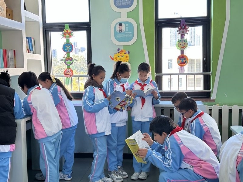 孩子們在閱讀區(qū)看書。