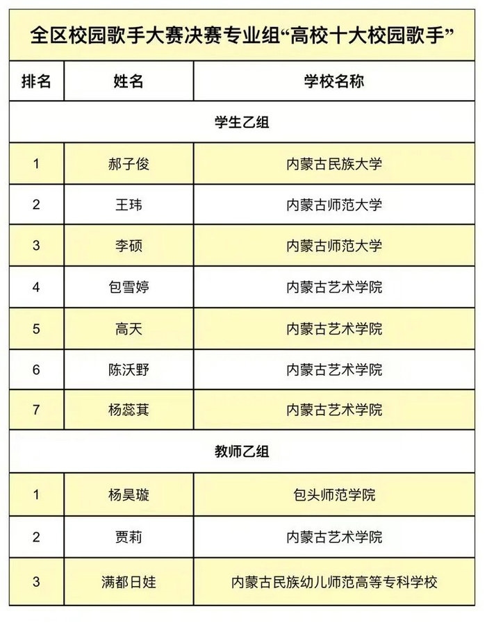 2023年全區(qū)大學(xué)生藝術(shù)節(jié)校園歌手大賽自今年9月啟動以來,經(jīng)過校級初賽、自治區(qū)復(fù)賽等層層選拔與評審,最終從來自全區(qū)46所高校上報的516份參賽作品中選出40名選手進(jìn)入決賽。經(jīng)過激烈角逐,專業(yè)組和業(yè)余組分別產(chǎn)生前10名選手獲得本次“高校十大校園歌手”榮譽(yù)稱號,并于23日頒獎晚會現(xiàn)場,為獲獎選手現(xiàn)場頒發(fā)榮譽(yù)證書和獎杯。
