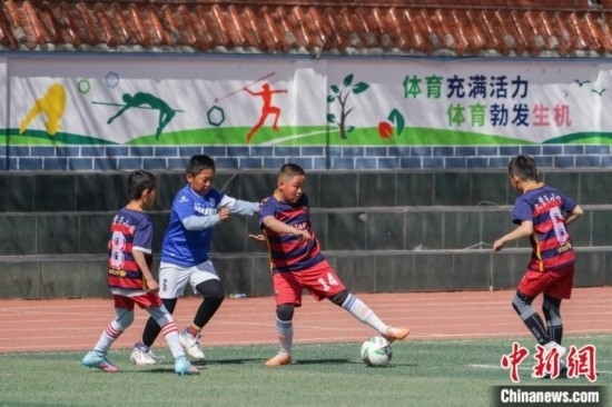 圖為西寧市大堡子小學(xué)開展班級足球聯(lián)賽。馬銘言 攝