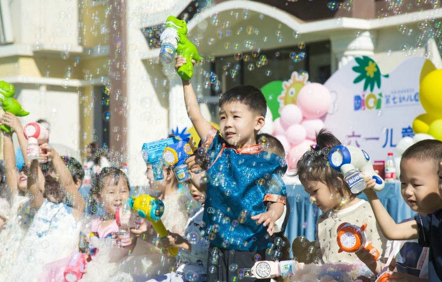 小朋友沉浸在泡泡的童話(huà)世界里
