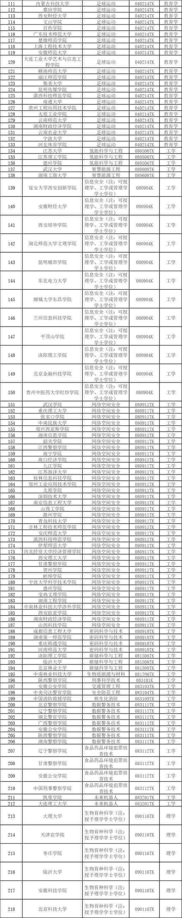 從申報(bào)的專業(yè)類型來(lái)看,2024年度共申報(bào)176種專業(yè)。其中,申報(bào)數(shù)量前五名的專業(yè)依次為:足球運(yùn)動(dòng)(39個(gè))、網(wǎng)絡(luò)空間安全(37個(gè))、運(yùn)動(dòng)訓(xùn)練(34 個(gè))、健康與醫(yī)療保障(17個(gè))、老年醫(yī)學(xué)與健康(14個(gè))。