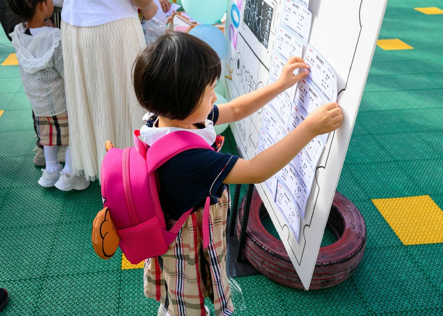 小朋友在家長的陪伴下,興高采烈走進校園內(nèi)各個打卡地,打卡蓋章、拍照留念。