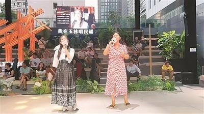 孫曉(左一)和營(yíng)員在成都玉林路演唱。