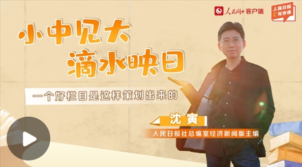 人民日?qǐng)?bào)社總編室經(jīng)濟(jì)新聞版主編沈寅:《身邊的經(jīng)濟(jì)故事》是人民日?qǐng)?bào)經(jīng)濟(jì)新聞編輯室今年推出的一個(gè)新欄目,在策劃和寫(xiě)作上都有創(chuàng)新之處,推出之后,反響良好。我們常說(shuō),滴水映日,用普通人的小水滴,反映出了國(guó)家各經(jīng)濟(jì)領(lǐng)域的大變化,力爭(zhēng)把小人物和大經(jīng)濟(jì)兩大視角融合起來(lái)。今天,聽(tīng)我來(lái)說(shuō)說(shuō)關(guān)于這個(gè)欄目的一些思考。