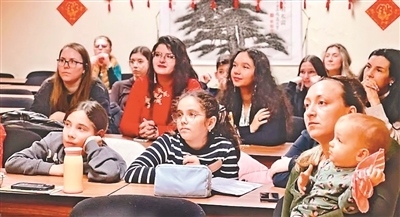 在哥斯達黎加,“中國文化論壇——春節(jié)傳統(tǒng)漫談”專題講座在哥斯達黎加大學(xué)舉辦。本土中文教師艾蓮娜從生肖蛇的寓意和春節(jié)的起源講起,詳細介紹了春節(jié)的禮俗以及相關(guān)的文化知識。