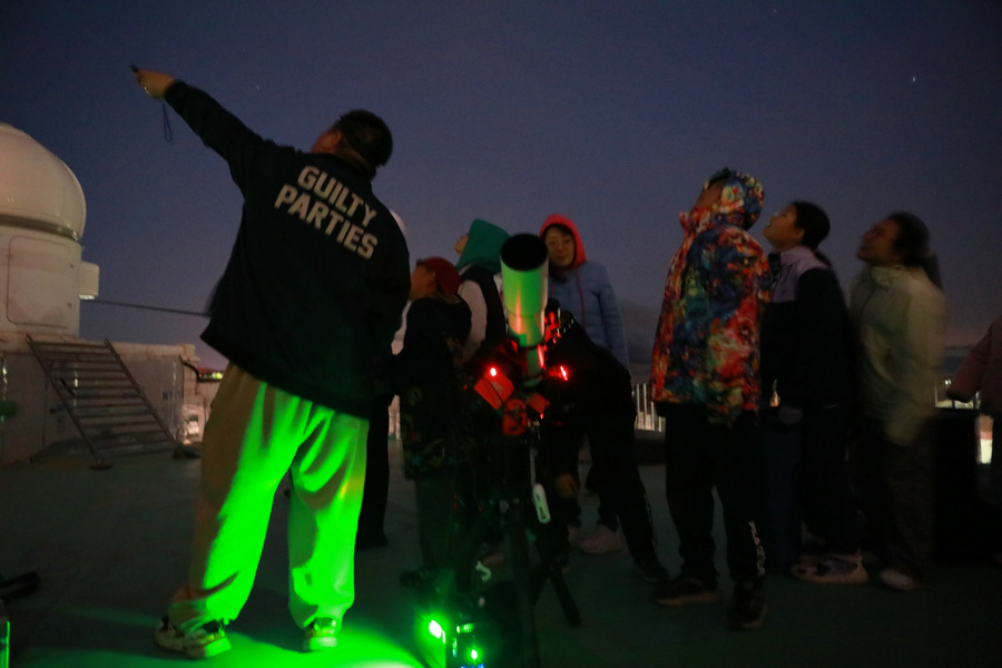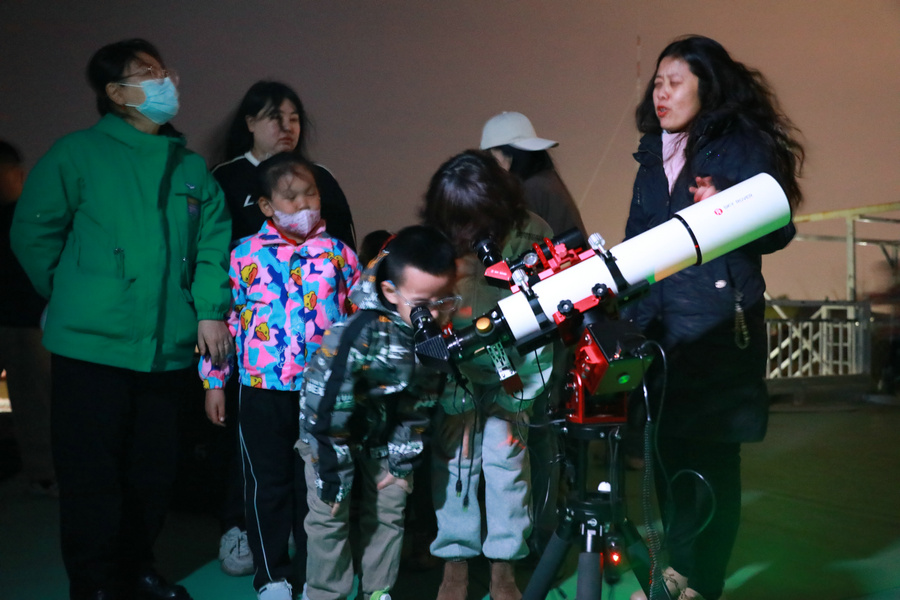 夜幕降臨,參加活動(dòng)的學(xué)員家庭走進(jìn)悟空天文臺(tái),近距離接觸“內(nèi)蒙古天眼”——自治區(qū)最大的單口徑光學(xué)望遠(yuǎn)鏡,學(xué)習(xí)望遠(yuǎn)鏡構(gòu)造與應(yīng)用原理。在老師的指導(dǎo)下,通過(guò)望遠(yuǎn)鏡觀測(cè)春季星空,辨識(shí)星座,領(lǐng)略土星光環(huán)、月球隕石坑等天象奇觀。活動(dòng)還特別設(shè)置了“天文趣味知識(shí)大挑戰(zhàn)”,以互動(dòng)問(wèn)答鞏固學(xué)習(xí)成果,孩子們爭(zhēng)相搶答,展現(xiàn)出對(duì)宇宙的無(wú)限好奇。
