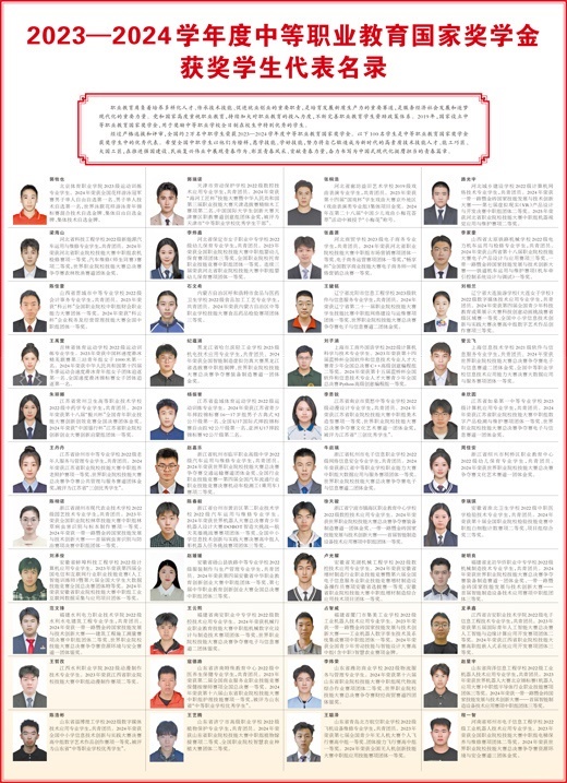 經(jīng)過嚴格選拔和評審,全國約2萬名中職學(xué)生榮獲2023—2024學(xué)年度中等職業(yè)教育國家獎學(xué)金。以下100名學(xué)生是中等職業(yè)教育國家獎學(xué)金獲獎學(xué)生中的優(yōu)秀代表。希望全國中職學(xué)生以他們?yōu)榘駱?,愿學(xué)技能、學(xué)好技能,努力將自己鍛造成為新時代的高素質(zhì)技術(shù)技能人才、能工巧匠、大國工匠,在推進強國建設(shè)、民族復(fù)興偉業(yè)中展現(xiàn)青春作為、彰顯青春風(fēng)采、貢獻青春力量,奮力書寫為中國式現(xiàn)代化挺膺擔(dān)當(dāng)?shù)那啻浩隆?/p>