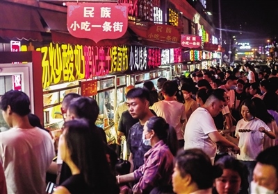城市的夜色是風景,是心情,是生活,也是商機。夜幕之下,圍繞著大召的街市流光溢彩、人頭攢動,中山路上更是霓虹璀璨、人聲鼎沸,惱包村、萬達花樣年華步行街、中海銀河天街、809美食街、附中東巷……每一個曾經深藏在人們心中的夜市繁華街區(qū)又恢復了往日的煙火氣息,讓這座城市增添了更多的活力。