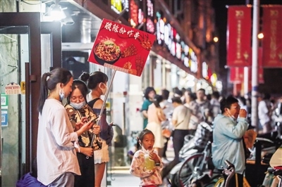 在中山西路,耀眼的霓虹燈點亮了城市最繁華的商業(yè)區(qū),人們摩肩接踵,這里聚集了更多的年輕人,他們一手緊握手機,一手拎著美食,眼睛還不停地尋找更新奇的東西?!皼]想到這么多人,感覺比過年的時候人還多?!薄拔覀兪窃诰W上看到這里開放夜市,所以約幾個朋友一起過來逛街的,沒想到這么熱鬧?!辈稍L中,無論是商戶還是市民,都為眼前繁華、熱鬧的場景欣喜。