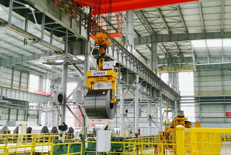 7月13日,內(nèi)蒙古包鋼全自動(dòng)智慧工廠——包鋼集團(tuán)金屬制造公司冷軋軋后庫(kù)內(nèi),吊運(yùn)裝備正在對(duì)鋼卷進(jìn)行吊運(yùn)入庫(kù)。這家智慧工廠,共有6臺(tái)行車(chē)、5組步進(jìn)梁、1組托盤(pán)運(yùn)輸鏈和1臺(tái)過(guò)跨轉(zhuǎn)運(yùn)平車(chē)。這座工廠采用的無(wú)人行車(chē)及智能庫(kù)管系統(tǒng),能夠通過(guò)模型算法實(shí)現(xiàn)行車(chē)智能調(diào)度、路徑規(guī)劃、垛位分配、自動(dòng)避障、多車(chē)協(xié)作等功能,智能化完成5條生產(chǎn)線(xiàn)所生產(chǎn)鋼卷的下線(xiàn)入庫(kù)、上線(xiàn)出庫(kù)、庫(kù)內(nèi)倒垛等,實(shí)現(xiàn)軋后庫(kù)內(nèi)所有行車(chē)和地面設(shè)備的自動(dòng)全無(wú)人作業(yè)和物料的實(shí)時(shí)跟蹤,是一座真正的24小時(shí)不用開(kāi)燈的無(wú)人作業(yè)工廠。