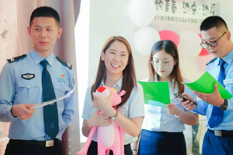 活動現(xiàn)場,布置溫馨浪漫,單身男民警與優(yōu)秀女青年歡聚一堂,在“電影配音”、“趣味問答”、“手繪團扇”、“心動時刻”等廣大青年喜聞樂見的游戲環(huán)節(jié)中展現(xiàn)才藝,歡快互動、輕松交流,現(xiàn)場處處洋溢著幸福的喜悅。