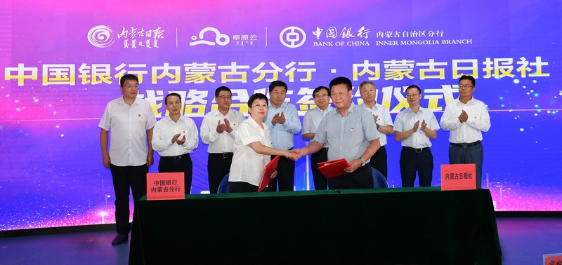 8月18日下午,中國銀行內(nèi)蒙古分行與內(nèi)蒙古日報社簽署戰(zhàn)略合作協(xié)議。雙方以本次簽約為新的起點,充分發(fā)揮雙方優(yōu)勢,進(jìn)一步深化雙方務(wù)實合作,全面推動金融與媒體融合發(fā)展,共同服務(wù)國家戰(zhàn)略和自治區(qū)發(fā)展大局,構(gòu)建銀媒融合新生態(tài),打造銀媒融合新模式,開啟銀媒融合新篇章。