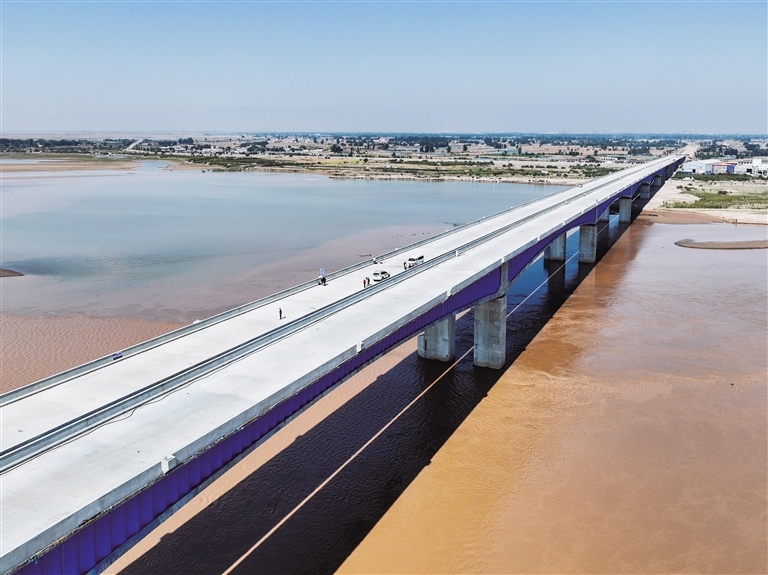 9月28日,包茂高速公路昭君黃河特大橋?qū)崿F(xiàn)主體完工。昭君黃河特大橋是包茂高速包頭至東勝改擴(kuò)建工程包頭西連接線的控制性工程,主橋?yàn)閲?guó)內(nèi)在建單聯(lián)最長(zhǎng)的梁式橋,采用雙向4車(chē)道高速公路標(biāo)準(zhǔn)建設(shè),全長(zhǎng)4300米。該橋建成通車(chē)后,將極大地縮短包鄂兩地的行車(chē)時(shí)間,提升路網(wǎng)通行能力。(本報(bào)記者 王曉博 攝)