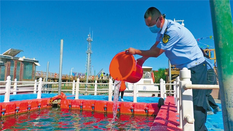 額濟納旗2022年居延海漁業(yè)資源增殖放流活動在風光秀麗、生態(tài)優(yōu)美的居延海畔東歸碼頭啟動,經(jīng)公證機關公證,同意現(xiàn)場向居延海放流草魚魚苗100萬尾,花白鰱89萬尾。活動現(xiàn)場,前來參與活動的居民拿著水桶,把一條條活蹦亂跳的魚苗放生到居延海中。據(jù)了解,該旗從2008年以來累計放流的魚苗數(shù)量達到了900余萬尾。