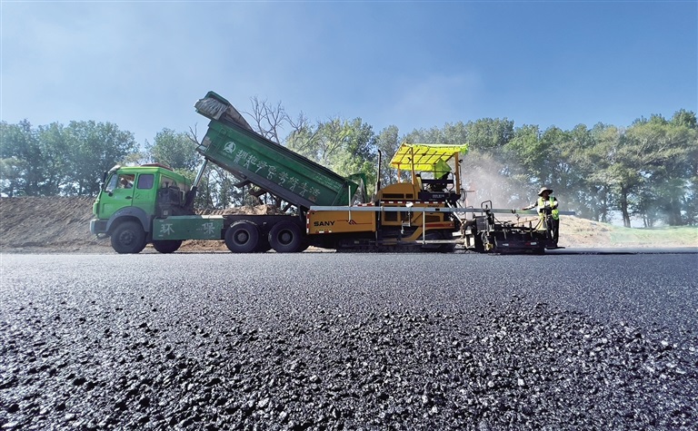 8月5日,施工人員正在鋪設(shè)瀝青。記者從中國(guó)二冶集團(tuán)內(nèi)蒙古分公司和林格爾新區(qū)金盛快速路北段-杭蓋路連接線項(xiàng)目部了解到,該項(xiàng)目正在鋪設(shè)瀝青,同時(shí)進(jìn)行智能交通以及道路交通標(biāo)識(shí)標(biāo)線施劃等工作,施工完畢后將于近日通車。該路段通車后,將有效緩解呼和浩特南部城區(qū)出城交通壓力,方便群眾出行。(記者 孟和朝魯 攝)