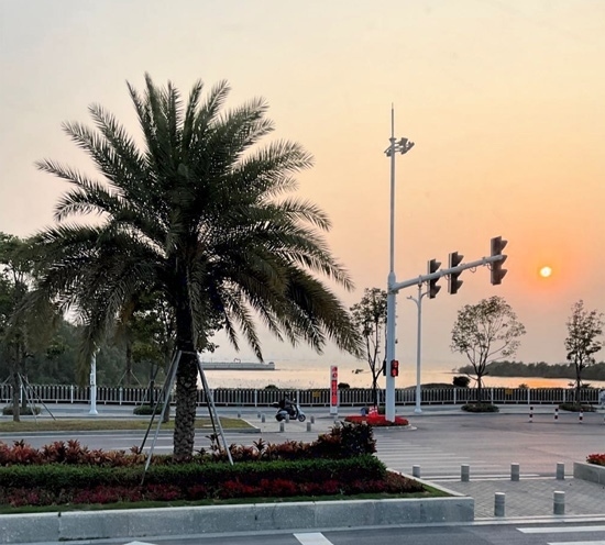 人民網(wǎng)東莞2月22日電 (記者趙雯 薛艷艷)濱海驛站坐落于廣東省東莞市濱海灣新區(qū),是東莞濱海長廊首個(gè)建成的重要節(jié)點(diǎn),緊靠海岸線,南臨前海,隔海眺望南沙自貿(mào)區(qū)、中山翠亨新區(qū)。立于驛臺前,海風(fēng)習(xí)習(xí)拂來,海天一線,日落降臨,浮光躍金。濱海驛站周邊建有廣場平臺、自行車道、沿海步道和園林綠化。濱海灣新區(qū)未來規(guī)劃建設(shè)一條長約40余公里的濱海長廊,以“運(yùn)動廊+人文鏈+活力岸”為建設(shè)目標(biāo),打造生態(tài)海堤,不僅為游客提供親水體驗(yàn),同時(shí)也為鳥類、兩棲類動物提供生境及遷徙通廊。